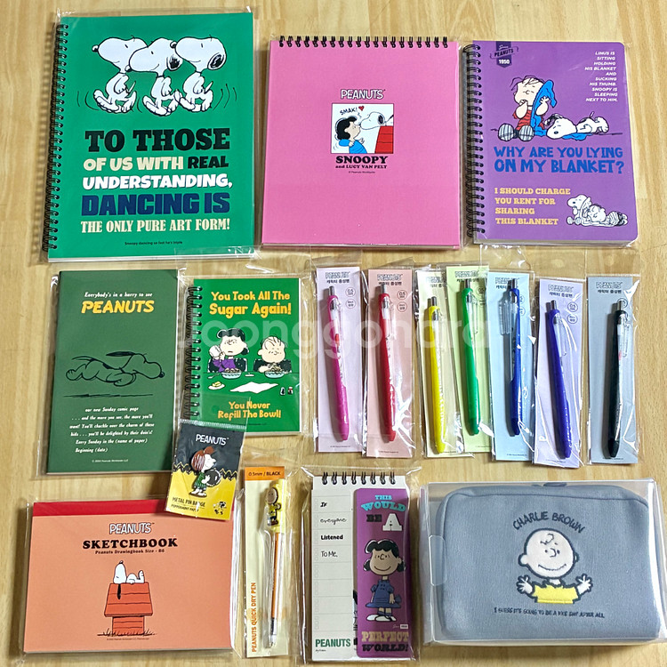피너츠 문구세트 일괄 미개봉 새상품입니다. (사진 순서: 전체샷-상세1-상세2-상세3-상세4) 파우치케이스, 75주년핀뱃지, 스케치북, 단어장, 오답노트, 스터디플래너, 볼펜(모두검정잉크) 등 … *개별구매 원하시면 골라서 채팅 남겨주세요. (큰노트 개당 3천/작은노트 개당 2천/ 뱃지 2천/볼펜 일괄 7천/파우치 5천) *계좌입금 시 세븐반택 가능 +3700 -6시 이전 결제 시 당일발송 :) -택배 꼼꼼히 포장해드려요~ -교환, 환불, 네고 XXX