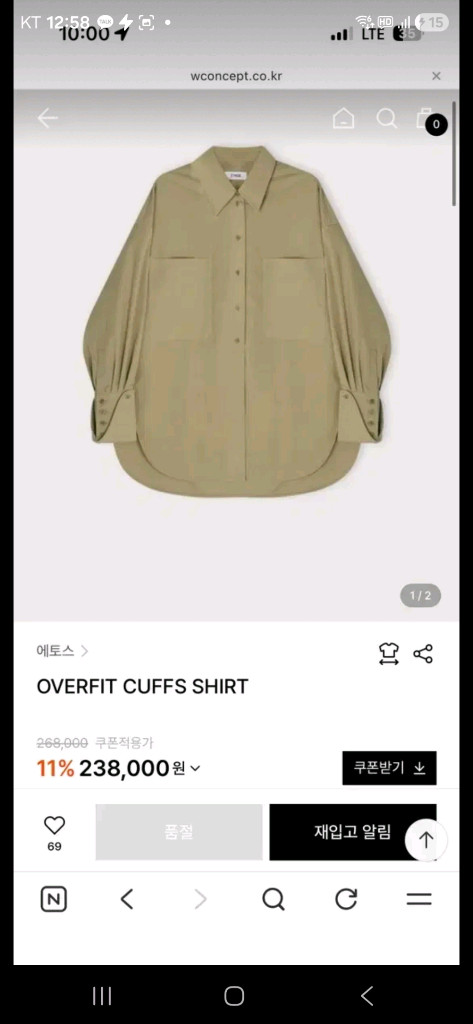 에토스 커프스 오버핏 셔츠에요. 계속 보관만한 새상품인데.. ㅠㅠ 옷장정리 하다가 새 옷걸이때문인지 셔츠 접히는 부분에 점같은게 찍혀서 작게 얼룩약을 묻혀 제거하려다가 그부분만 살짝 색이 빠졌어요. 셔츠깃이 딱 접히는 부분이고 자세히 보지않으면 거의 티안나긴 하는데 여튼 감안해서 저렴하게 내놔요. 모델처럼 커프스셔츠랑 같이 착용하면 예뻐요 세트로 구매하시면 30만원에 드려요.