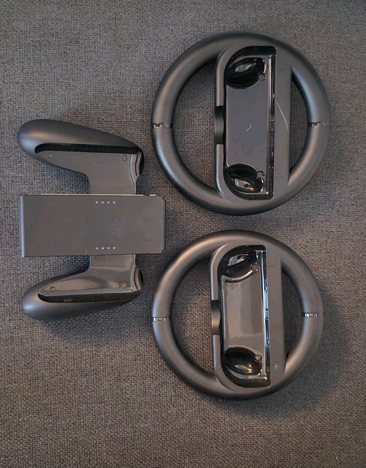 닌텐도스위치1을 위한 악세사리입니다. 상태 좋고 조이콘 핸들중 하나엔 기스가 있지만 사용에 전혀 문제 없습니다. 싸게 세트로 판매합니다.