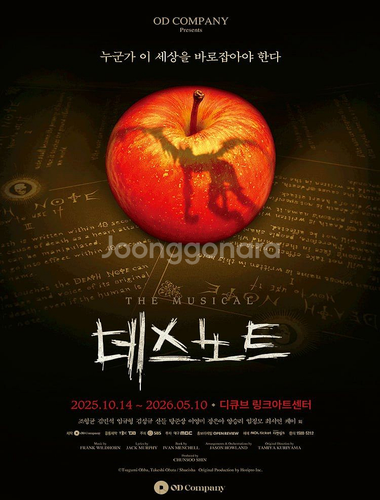 데스노트 뮤지컬 장소: 디큐브 링크아트센터 공연 기간: ~4월 19일 (월요일 휴연) 공연 시간 화: 19:00 수: 14:00 / 19:00 목·금: 19:30 주말·공휴일: 14:00 / 19:00 좌석 및 가격 VIP석: 180,000원 단석, 연석 모두 선택 가능하며, 좌석은 선착순으로 배정됩니다. 관람을 원하시는 날짜와 회차를 알려주시면 가능한 좌석을 빠르게 안내드립니다.