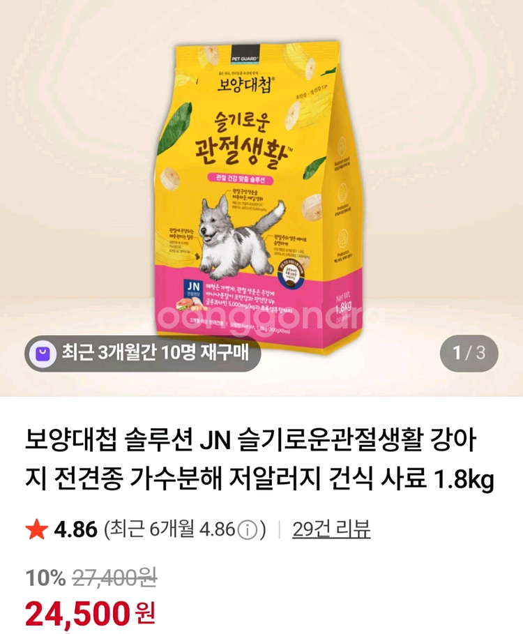 강아지 관절사료 1.8키로 미개봉 유통 27년 택비 따로 내셔야 합니다 네고 문의 절대 안받습니다 서로 시간 낭비 안했으면 좋겠네요 채팅 주세요 ^^