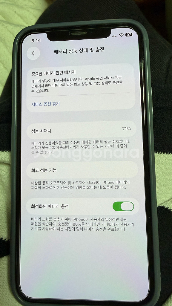 아이폰 11pro 256기가 그레이 색상 판매합니다. 배터리 상태 71%, 정상 작동하며 전체적으로 깔끔한 상태예요. 구성품은 박스, 이어폰, 액정 보호 필름, 케이스(는 필요 시)함께 드립니다.