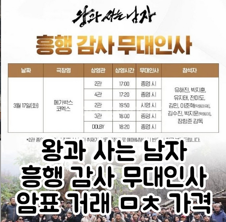 개인정보(거래정보)를 주고받는 행위는 사기에 노출될 수 있으므로 즉시 중고나라로 신고해 주세요왕사남 무대인사 터무니없는 가격에 사고 파는 티켓거래 지양해주세요 온라인 신고센터 신고 할 수 있습니다.