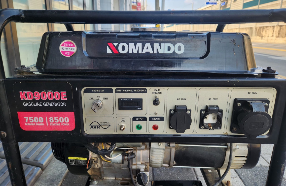 9kW 가솔린 발전기 코란도(KD9000E) 입니다. 사용감은 있지만 작동에는 문제없어요. 산업용, 캠핑이나 비상용으로 활용하기 좋습니다. 일발시동 됩니다. 밧데리 키시동 정상 작동 됩니다 문자 보다는 통화가 좋습니다. olo 四六九八 三五三六