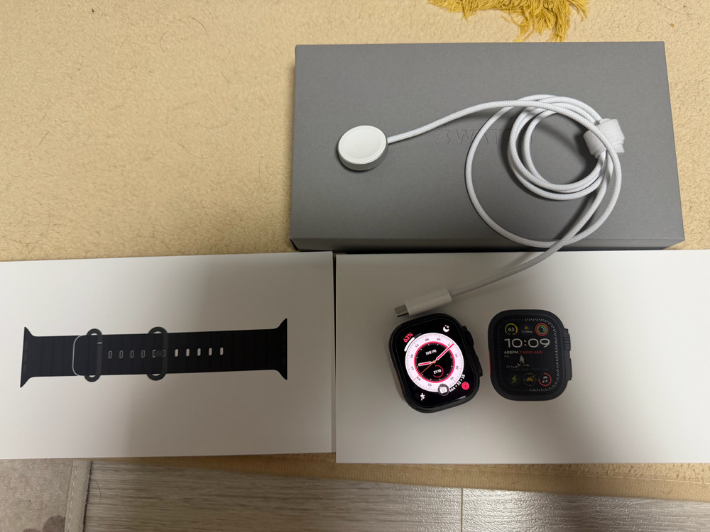 애플워치 울트라2 블랙 색상입니다. 2025년 9월에 구입하였으며 애플케어는 27년 9월 13일까지 입니다. 애플케어 양도 가능합니다. 전면에 강화유리 필름 붙어있으며 측면에도 보호필름 붙어있습니다. 센서부분에는 생활기스는 있으나 기능에 이상은 없습니다. 풀박스 상태이며 구성품 중 정품 스트랩은 미사용 상태입니다. 평일에는 서울 2, 3호선 교대역 인근에서 직거래 가능하며 주말에는 경기도 고양시 덕양구 내유동에서 직거래 가능합니다. 택배거래는 하지 않습니다.