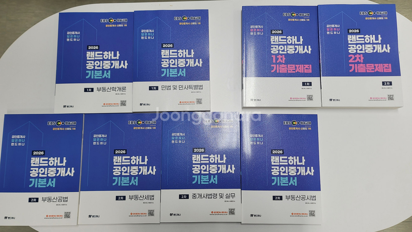 2026 EBS 랜드하나 공인중개사 1차, 2차 기본서 및 기출문제집 교재만 판매하며 상태는 구매 당시 그대로 입니다. 일괄 또는 차수별 구매가능하며 다른 구성 구매 원하시면 별도로 상품 올렸으니 확인하시면 됩니다. 1, 2차 기본서 및 기출문제집 일괄 130,000원 1) 기본서 1,2차 일괄 100,000원 2) 기출문제집 1,2차 일괄 40,000원 3) 1차일괄(부동산학개론, 민법 및 민사특별법) 기본서 40,000원 (1차 기출문제집 포함 60,000원) 4) 2차일괄(부동산공법, 부동산세법, 중개사법령 및 실무, 부동산공시법) 기본서 70,000원(2차 기출문제집 포함 90,000원) 택배비 포함(우체국택배, 안전결제 )