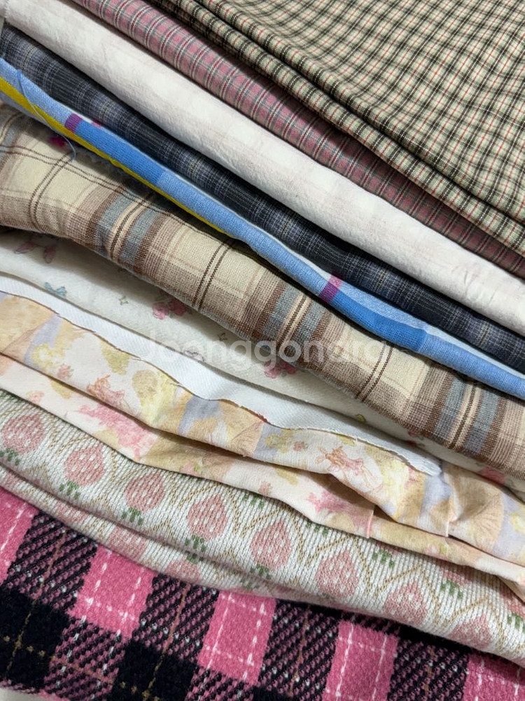 체크앤플라워 원단입니다! 1마당 평균 1.2 정도 되는 아이들이며 검색해보시면 다 엄청 비싸지만 재봉을 안해서 판매합니다. 일괄판매이며, 계좌거래합니다! 다른 원단들도 남은거 추가하시면 저렴하게 다 보내드립니다!