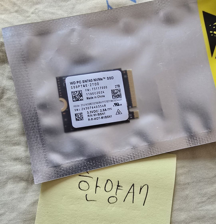 직거래 : 5호선 미사역 근처 아파트 & 마곡 LG 사이언스파크 (근무시간 내) 택배거래 : 선불 4천원 / 이후 금액은 제가 부담하겠습니다. (박스 + 뾱뾱이 잘 감아서 안전포장합니다.) 문의는 편하게 주세요. (서로 시간 낭비 하지 않기 위해 어느정도 구매 결정 하신 뒤에...^^ 부탁드립니다.) 애완X / 흡연 X - WD SN740 2TB 미사용 SSD - 스팀덱&Rog Alloy 용도로 많이들 사용하시는 2230 사이즈이고, 요청하시면 연장키트 함께 드립니다. AI로 조사한 내용 아래 설명드려요. Western Digital WD SN740 2TB는 스팀덱, ROG Ally, 서피스 등 2230 규격 기기에 최적화된 고성능 M.2 NVMe SSD입니다. PCIe 4.0x4 인터페이스, 최고 5,150MB/s 읽기 및 4,850MB/s 쓰기 속도를 지원하며 TLC 낸드를 채용해 콤팩트한 사이즈 대비 빠르고 안정적인 성능을 제공 #p31 #sn750 #sn770 #pm991a #pm981