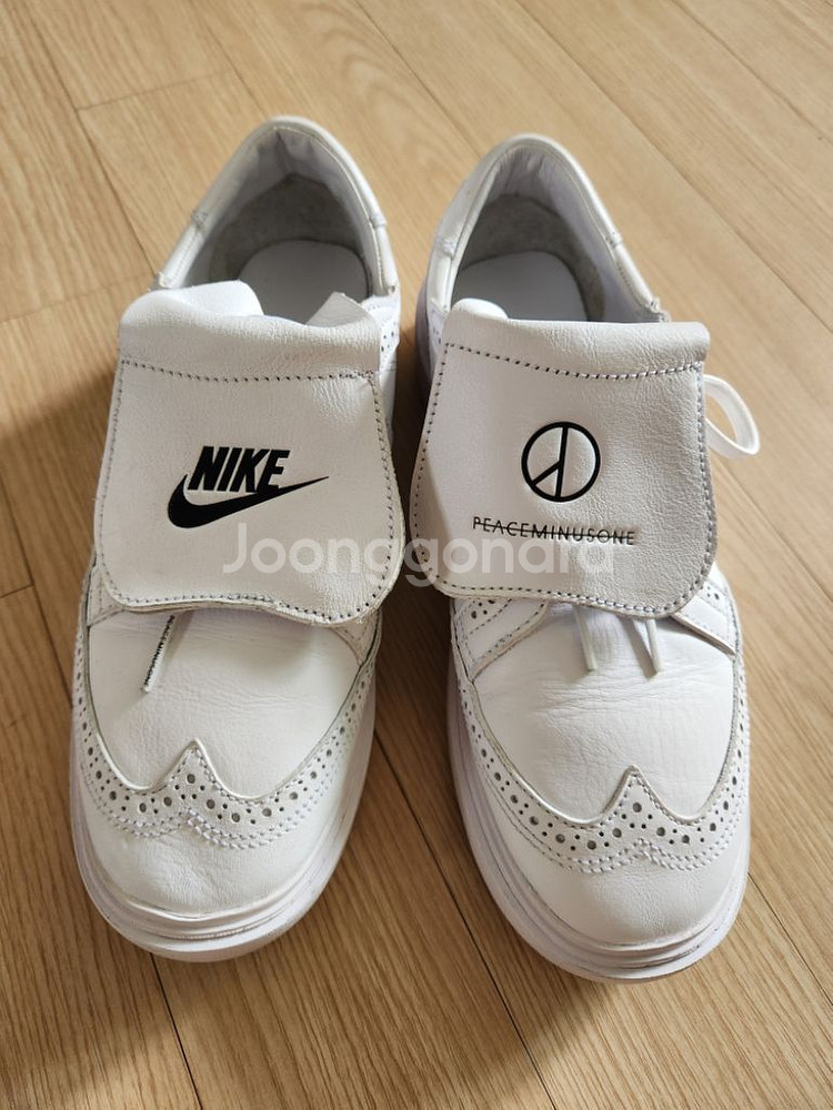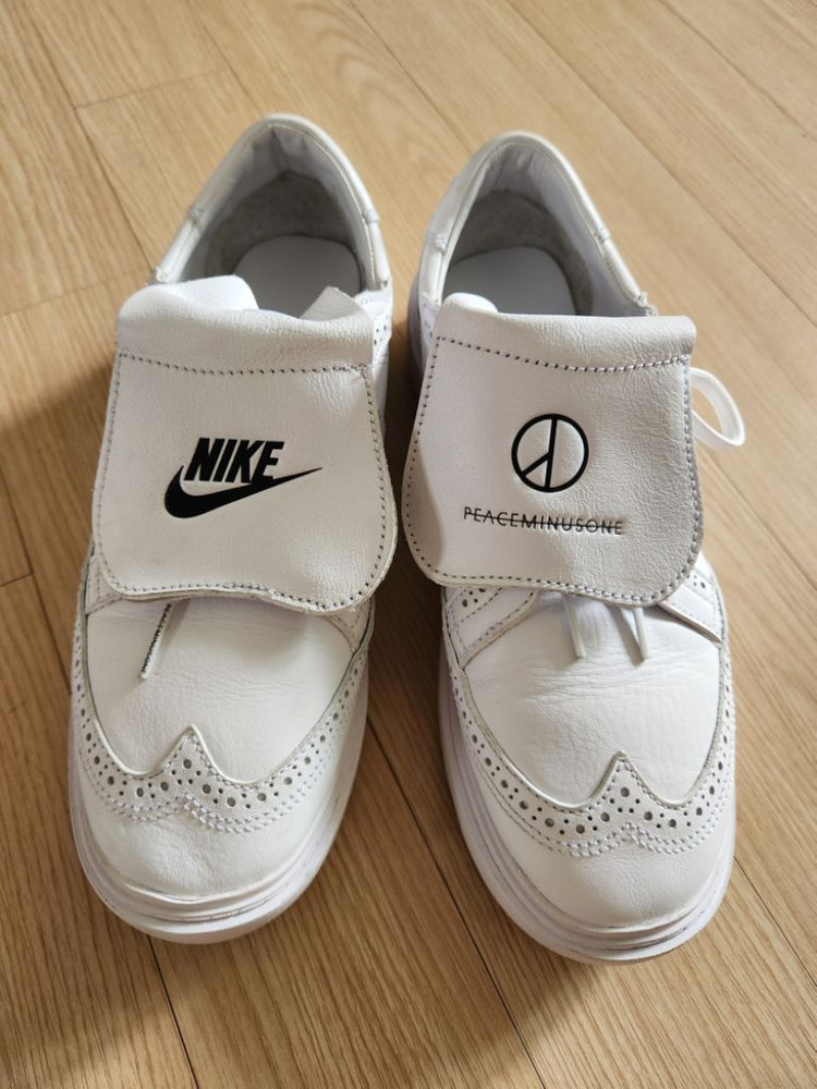 모델명 : DH2482-100 나이키 x 피스마이너스원 컨도1 피마원 권도 화 이트 (Nike x Peace minusone Kwondo1 White) 사이즈 : 265mm ( 260부터 가능 ) 굽높이 : 3cm. 재질 : 합성피혁, 고무 GD 권지용님의 신발로도 유명한 권도1 모델입니다 럭셔리하면서도 캐주얼하며 데일리로 신어도 너무 예쁘구요 한정판이라는 수식어가 붙어있기 부끄럽지 않은 모델입니다 심플한 베이직하면서 착화감까지 좋아 스니커즈겸 단화로 일상에서도 편한 신발입니다 유행 타지 않고 여느옷들과 어울려서 코디할때 매치하기 좋아요 예전에 세탁후 깔창분실해서 일반깔창 새로 깔아놓아요 바닥 닦아 놓아요 ~ 상세설명 ~ 피스마이너스원(Peaceminusone)의 지드래곤이 나이키의 클래식 '에어포스 1(Air Force1)'의 두 가지 버전을 재해석한 후, 이제 '권도원(Kwondo1)'이라는 자신의 운동화를 디자인했습니다. 매끄러운 흰색 가죽으로 제작되었으며 두 브랜드 로고가 새겨진 브로그 윙팁과 킬티디테일이 특징입니다. 깔끔한 화이트 계열의 스니커즈로 새하얀 도화지 위에 각자 개성에 맞게 색을 입혀 커스텀하여 나만의 스니커즈를 제작해 보세요~ 시간이 지남에 따라 희소성과 제품의 가치가 높아지는 멋진 스니커즈 입니다 * 근처이시면 대면 거래, 비대면 문고리 모두 괜찮아요 * GS, CU 근처 편의점으로 반값택배나 집으로 일반택배도(4200원예상) 가능해요