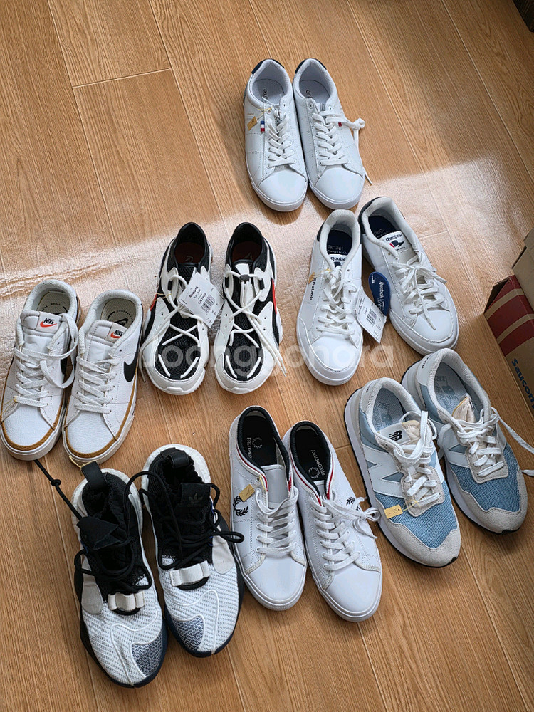 판매하는 신발은 모두 최저가 혹은 레트로 빈티지 레어템으로 매물이없는 제품입니다. 대부분 원래 정가보다 싸게 가격책정했으며 일부상품 리셀가가 붙어서 고가에 거래가 이루어진경우 해당가격보다도 10-40% 더 저렴하게 책정했습니다. 사진갯수 제한으로 개별사진 필요시 보내드려요. 265 1.뉴발란스 ws237fa 5.5만 260 2.프레드페리 b4266 646 6만 3.아디다스 b42244 7만 4.조던 스피자이크 315371 060 20만(박스) 255 5.리복cn4037 로얄스매쉬 3.5만 6.리복cn7900 8만 7.나이키 cu4150-102 4만 8.호킨스스포츠 hl09010 1.5만