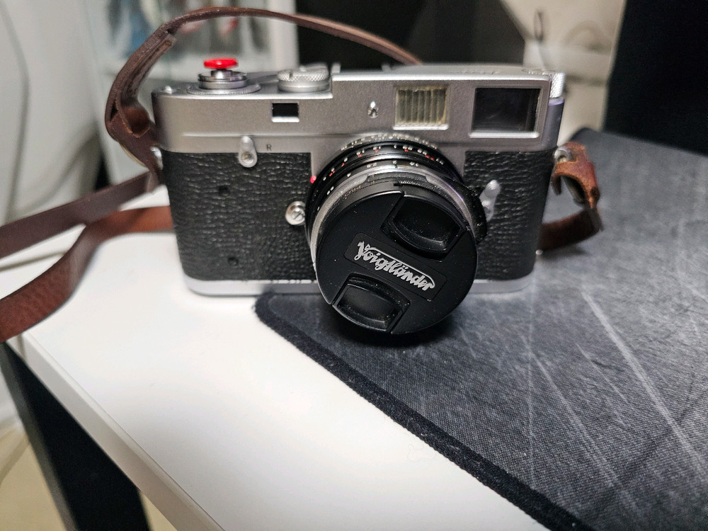 클래식한 필름카메라입니다. 레더 스트랩과 함께 구성되어 있고, 전체적으로 깔끔한 상태로 보입니다. 필름 사진에 관심 있으신 분께 추천드려요! 상태 좋습니다. 보잌 35미리 1.4포함입니다. 앞캡은 없는 상태입니다. 직거래민 가능합니다