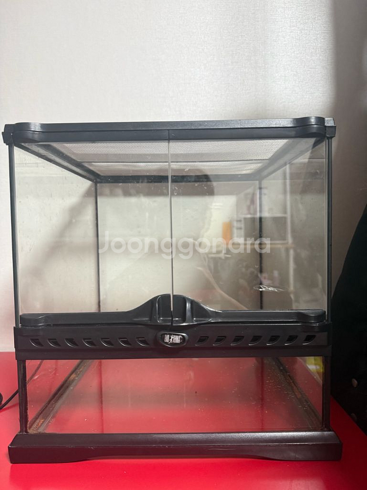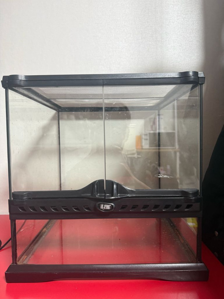 파충류나 소동물 사육용 유리 케이지와 온도조절기 세트예요. 사용감은 있지만 기능상 문제없이 잘 작동합니다. 깔끔하게 관리해서 상태 양호해요!
