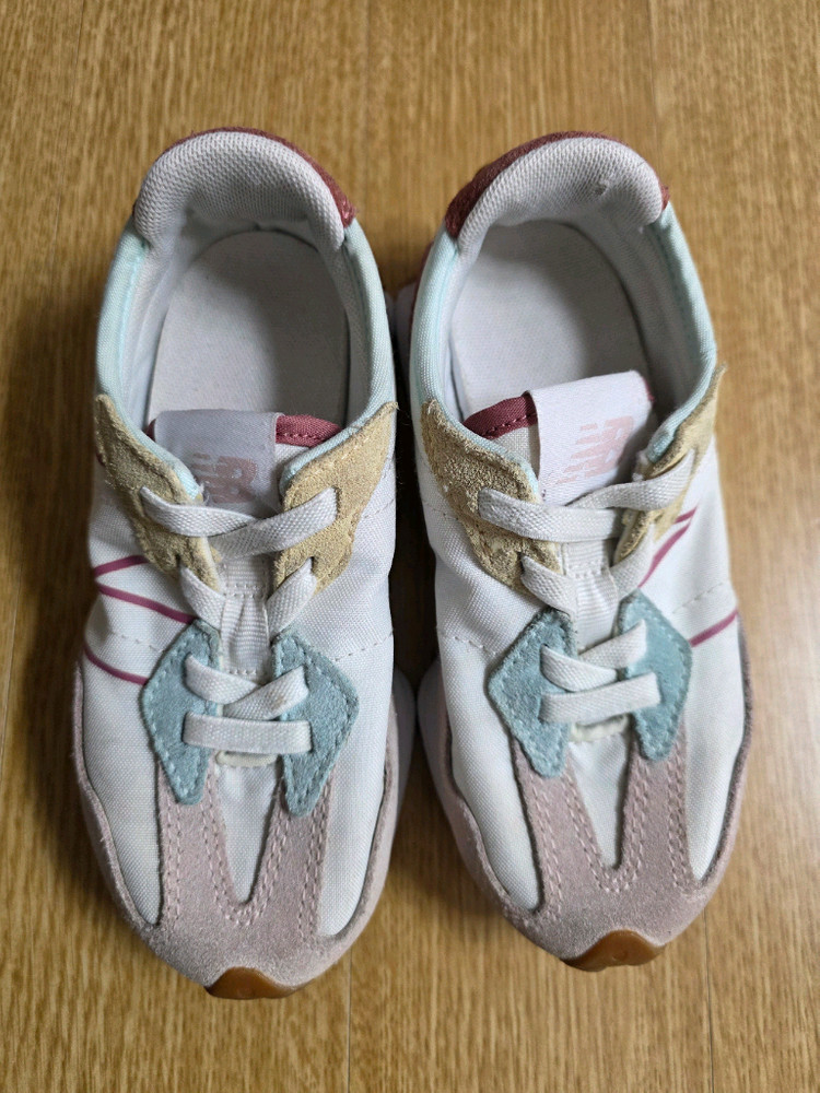 - 파스텔 색상 조합 예쁨 - 신고 벗기 편한 밴딩끈, 착화감 아주 편함 - 전반적으로 깨끗하나 스웨이드 재질로 사용감은 충분히 있으니 예민맘 패스 - 빠른거래순, 네고 반품 환불 정중히 사양