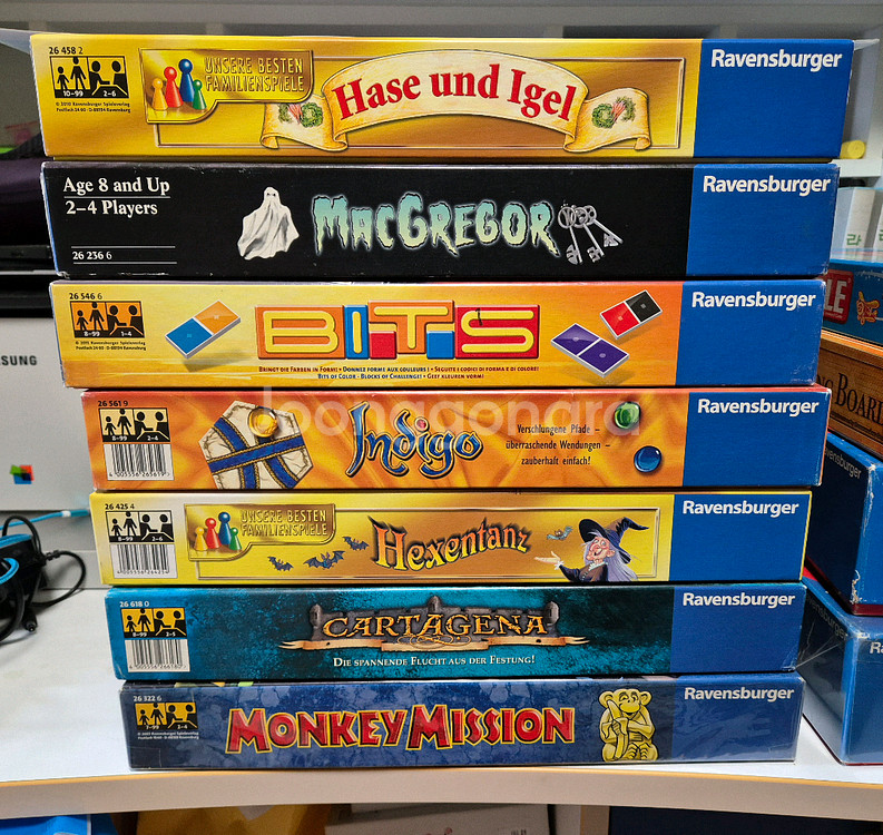 라벤스부르거 보드게임 가족게임 라벤스부르거 토끼와 고슴도치 3.0 라벤스부르거 한방중유령 맥그리거 3.5 라벤스부르거 비츠 5.0 라벤스부르거 인디고 (보석 한개 부족) 2.5 라벤스부르거 마녀의 무도회 3.0 라벤스부르거 카타나게 3.5 라벤스부르거 멍키미션 2.5 (막대칩이 작아 원형나무칩으로 변경) 일괄 20만원 낱개는 적힌가격 판매