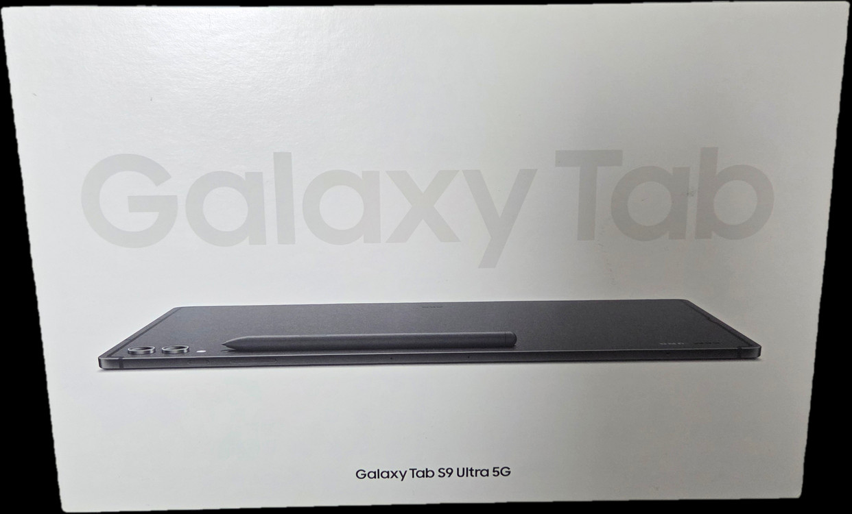 갤럭시탭 S9 울트라 5G입니다. 저장공간은 1TB입니다. 그라파이트 색상입니다. 풀박스 구성입니다. 지문, 방사방지 필름 부착돼있습니다. 측면, 후면, 카메라 필름 부착돼있습니다.