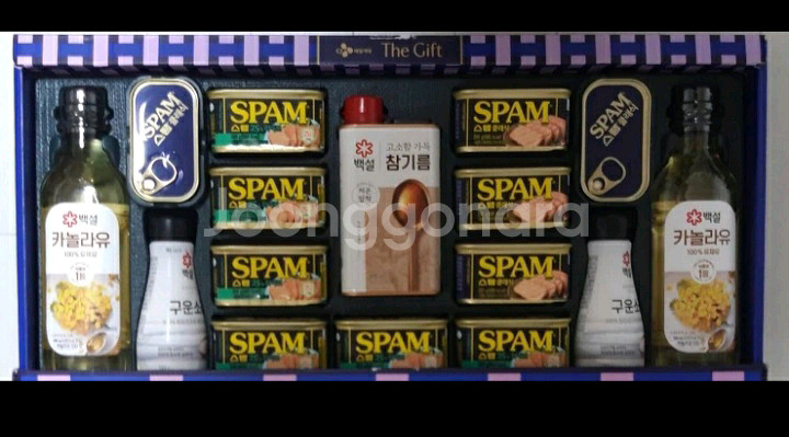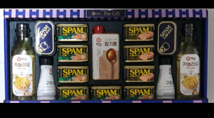 CJ제일제당 스팸 선물세트 L-6호 (구성품 모두 새제품 입니다) 제품별 세부 유통기한입니다 스팸라이트 200g 6개 28.12.07.까지 스팸클래식 200g 3개 28.09.03.까지 스팸클래식 120g 2개 28.10.01.까지 백설 카놀라유 500ml 2개 27.12.28.까지 백설 참기름 330ml 27.12.14.까지 백설 구운소금180g 2개 제조일자 25. 12. 12. (소금은 제조일자만 표기되어 있습니다)