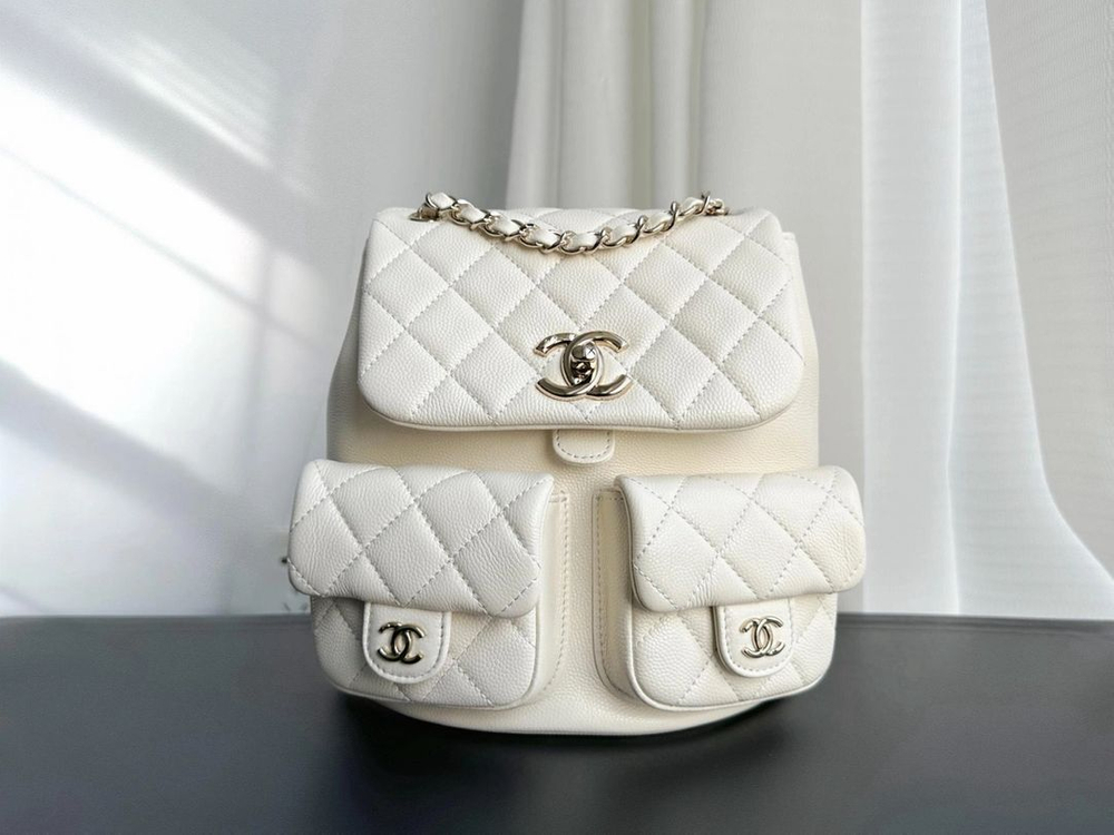 [새상품] 샤넬 듀마 투포켓 백팩 캐비어 화이트 미듐