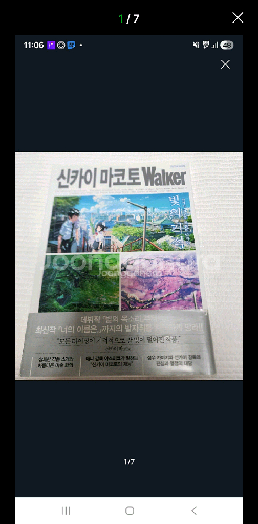신카이 마코토 walker 빛의 기적 신카이 마코토 작품의 발자취 입니다. 구매한 지 오래된 서적이라서 커버 띠지가 헤졌습니다. 너무 예민하거나 민감한 분들에게는 구매 권하지 않습니다.