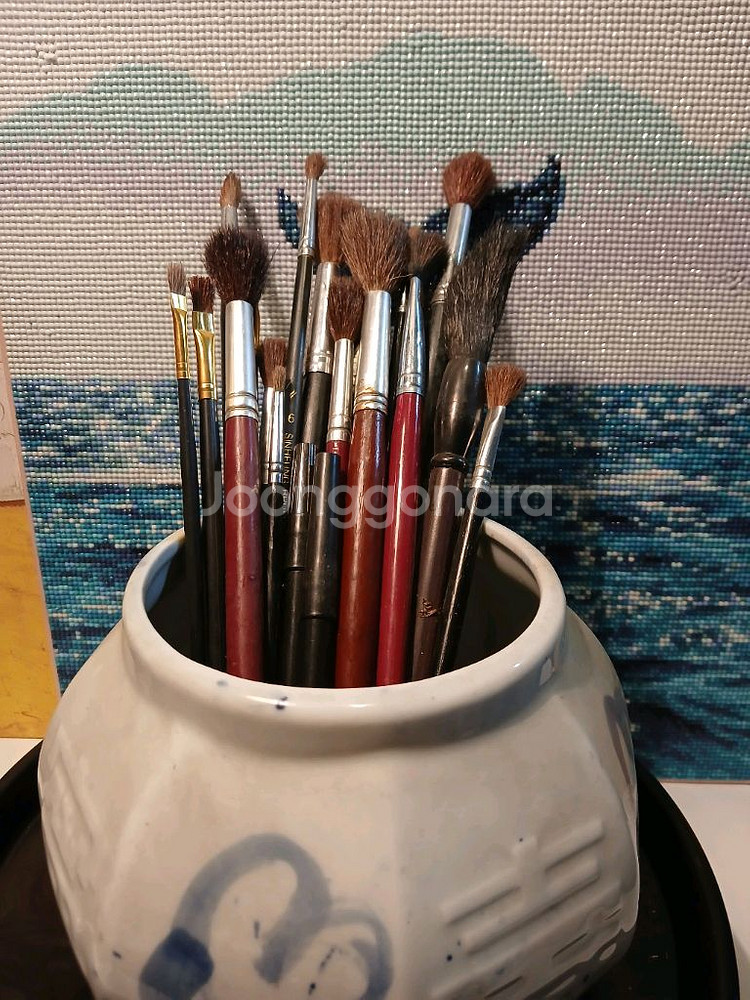 개인정보(거래정보)를 주고받는 행위는 사기에 노출될 수 있으므로 즉시 중고나라로 신고해 주세요다양한 종류의 수채화 붓들이 담긴 화병이에요. 사용감은 있지만 아직 충분히 사용 가능한 상태입니다. 수채화 작업하시는 분께 좋을 것 같아요!