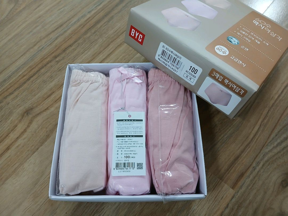 BYC 여성 맥시 팬티 3매 팝니다. 면 100%, 사이즈 100, 모두 12,000원입니다. 서울시 상계9동 청원고등학교 후문 또는 지하철 7호선 마들역에서 직거래 가능합니다. GS 반값택배 1,900원 가능합니다. 에눌, 네고 사양합니다.