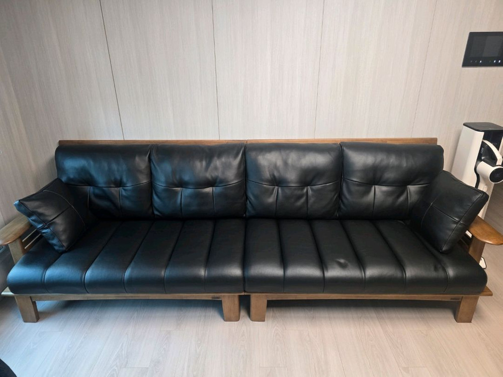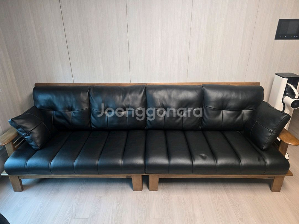 개인정보(거래정보)를 주고받는 행위는 사기에 노출될 수 있으므로 즉시 중고나라로 신고해 주세요우드코 제품 고급스러운 블랙 가죽 소재의 4인용 소파예요. 원목 프레임과 함께 구성되어 있고, 전체적으로 깔끔한 상태입니다. 거실 분위기를 고급스럽게 만들어주는 인테리어 소품이에요. 사용감 있습니다 길이 280입니다