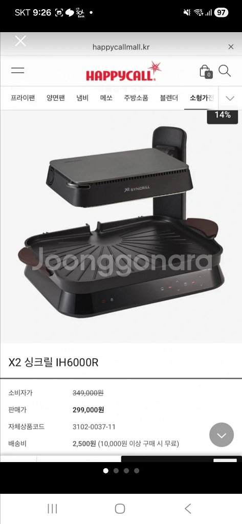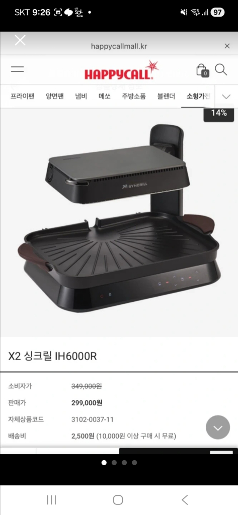 해피콜 X2 싱크릴 HC-IH6000R 전기그릴