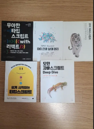 개발 서적 여러 권 판매합니다 - 모던 자바스크립트 Deep Dive 10,000 - 타입스크립트 시작하기 8,000 - 우아한 타입스크립트 with React 10,000 - 마이크로 상태관리 10,000 - 코어 자바스크립트 8,000 전반적으로 상태는 양호합니다 다만 전권 연필로 줄 긋은 흔적이 있으며, 타입스크립트 책은 앞 표지가 찢어져 있습니다 별개로 구매가능합니다 총합 3만원에 드릴게요 택배비 별도, 편의점 택배 가능
