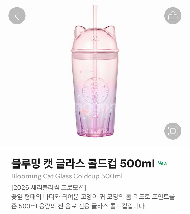 (새상품) 스타벅스 블루밍 캣 글라스 콜드컵