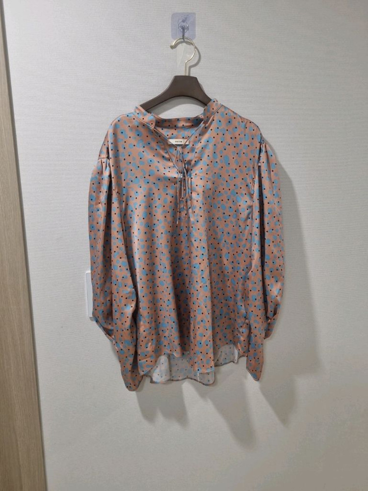 SYSTEM 블라우스입니다 - 소재: 폴리에스터 100%, 레이온 100% - 가슴둘레 82cm, 엉덩이둘레 94cm, 신장 160cm 가단49 총장66 화사한 패턴이 돋보이는 블라우스입니다. 구김안가서 좋아요. 상태좋습니다