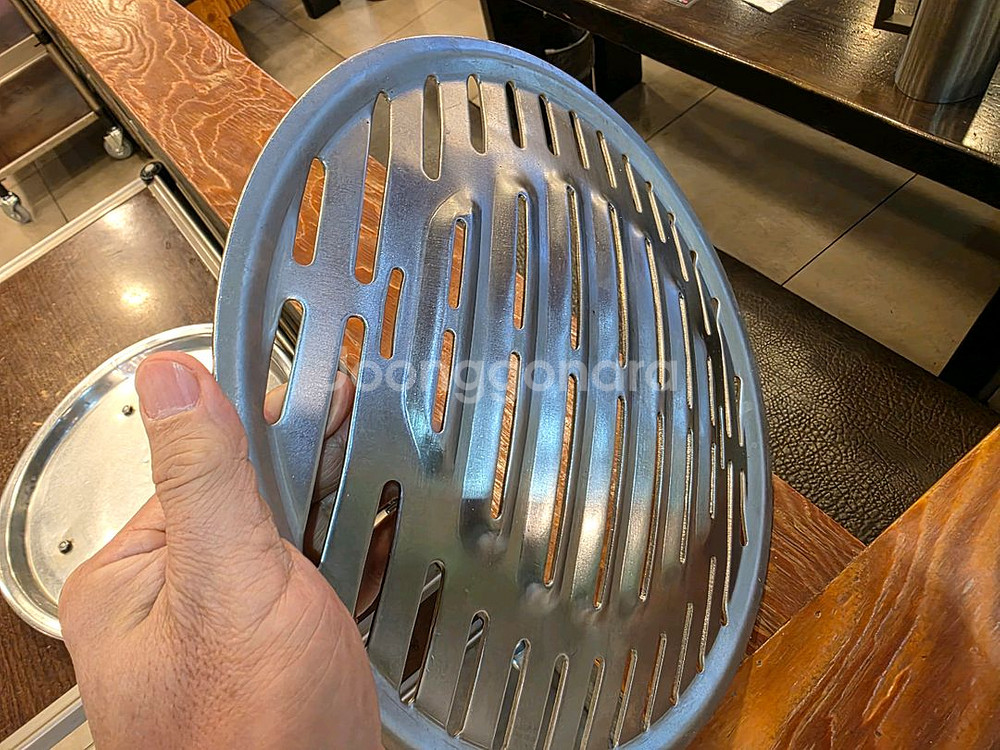 개인정보(거래정보)를 주고받는 행위는 사기에 노출될 수 있으므로 즉시 중고나라로 신고해 주세요스테인리스 소재의 원형 그릴판이에요. 판매메뉴변경으로 판매합니다 장당 4,000원 재고가 많습니다 대량구매시 할인가능합니다 전국택배거래시 17장마다 택배비 7천원발생합니다 거래문의는 010 2359 7439