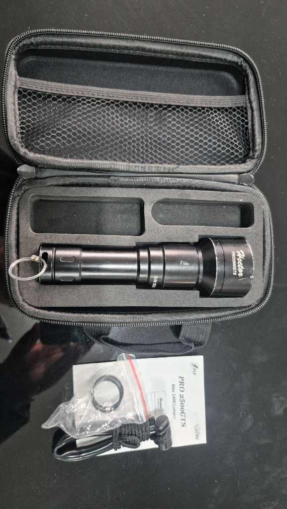 수중랜턴 엘프 프로 2500 gts 사용감 있음 정상작동 본체,하드케이스