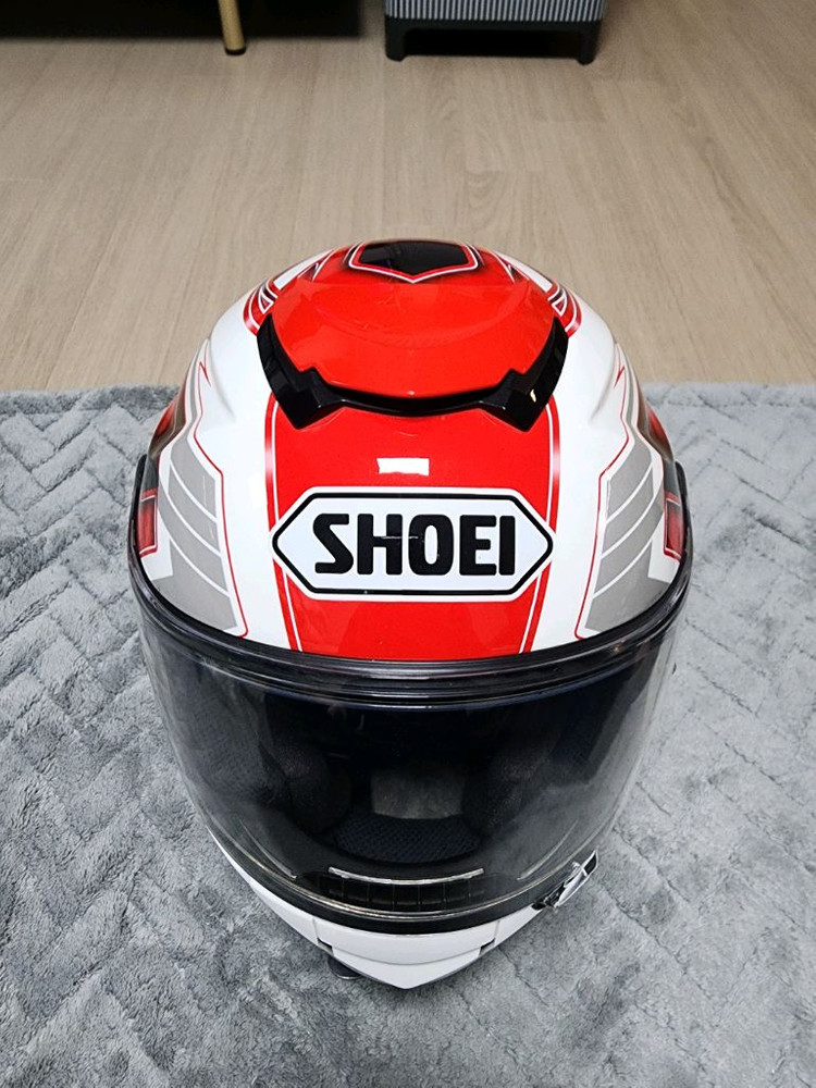 쇼에이 gt air xl사이즈 오토바이 헬멧 판매합니다. 바접 후 내피 세탁해서 보관했습니다. 사용은 많이 하진 않았지만 생활감은 있습니다. 생활 스크래치 등 사용감은 사진 참고해주세요. 친커튼은 새제품 있어서 장착해놨습니다. 아라이 헬멧 가방과 파우치에 넣어 드립니다. 직거래만 가능합니다.