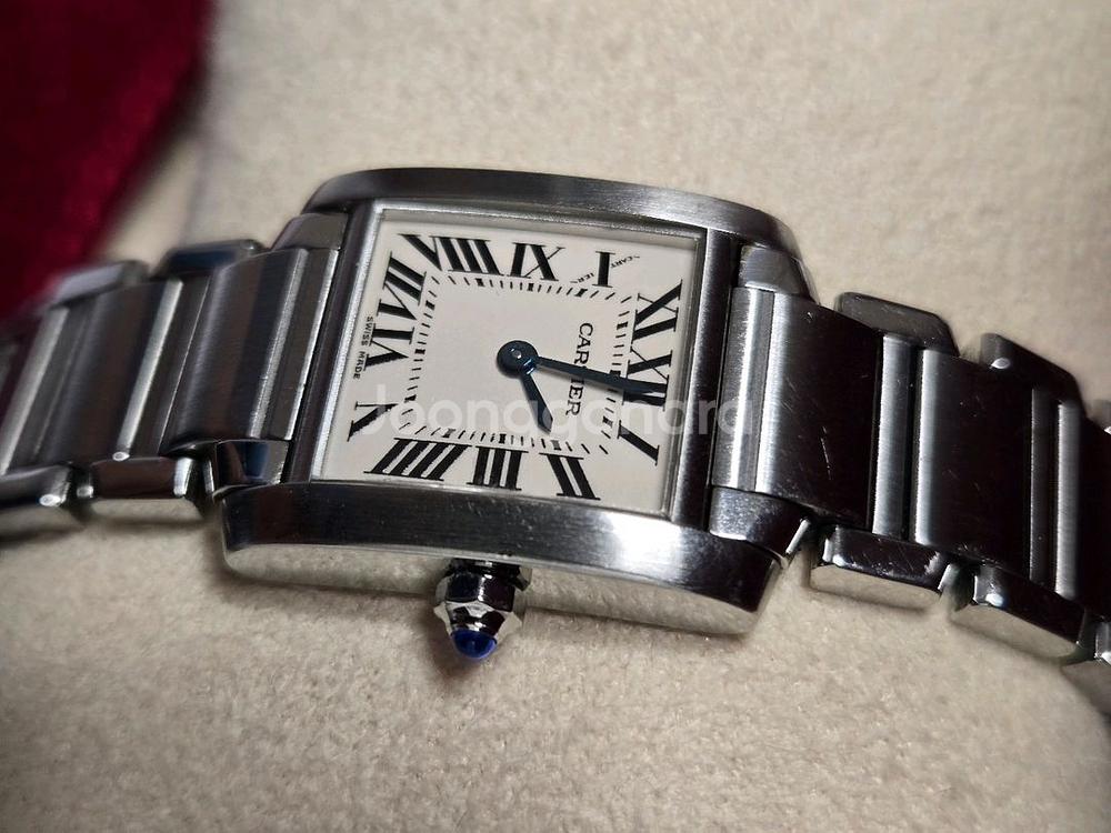 까르띠에 탱크 프랑세즈 구형 모델입니다. (신형과 큰 차이는 없는 것 같아요) 유행타지 않고 일상에서 스테디하게 착용 가능합니다. 작년에 배터리 교체 및 점검 완료 약간의 생활기스는 있으나, 기능적으로 모두 정상 작동 구매하시는 분 손목에 맞게 줄여서 착용하시면 됩니다. (매장 가서 해달라고 하면 됩니다.) 구성품은 시계, 케이스, 파우치, 쇼핑백, 책자? 등 사진 참고 까르띠에 공홈에도 정품 등록되어 있으며, 정품 아닐 시 환불드려요. 서울 직거래 또는 앱결제 등 문의주세요. 구매하실 분만 연락주세요~