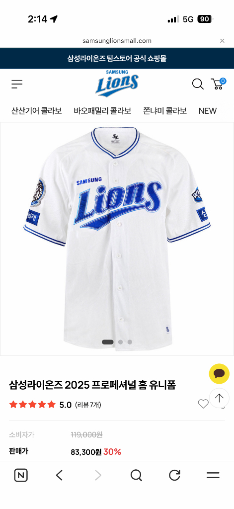 삼성라이온즈 2025 프로페셔널 홈 유니폼 90 구자욱