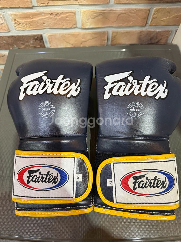 페어텍스글러브 격투 복싱정품 복싱글러브 12. 네이비와 옐로우 컬러 조합으로 깔끔하고 상태도 양호해요. 복싱이나 무에타이 연습용으로 좋습니다.