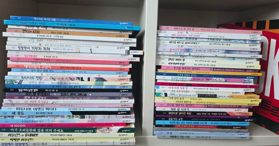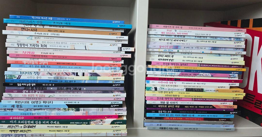 총92권입니다 앤서니브라운,최숙희 단행본 증정 펼쳐보지않아 쩍쩍소리나는 책 다수입니다 책등빛바램 외엔 책속상태는 최상급 입니다 트럭책 한권만 사용감있어요 사진상 보여지는게 전부입니다 좋은책 저렴히 가져 가셔서 편안히 보세요 무게로 택배 2-3박스 예상 합니다