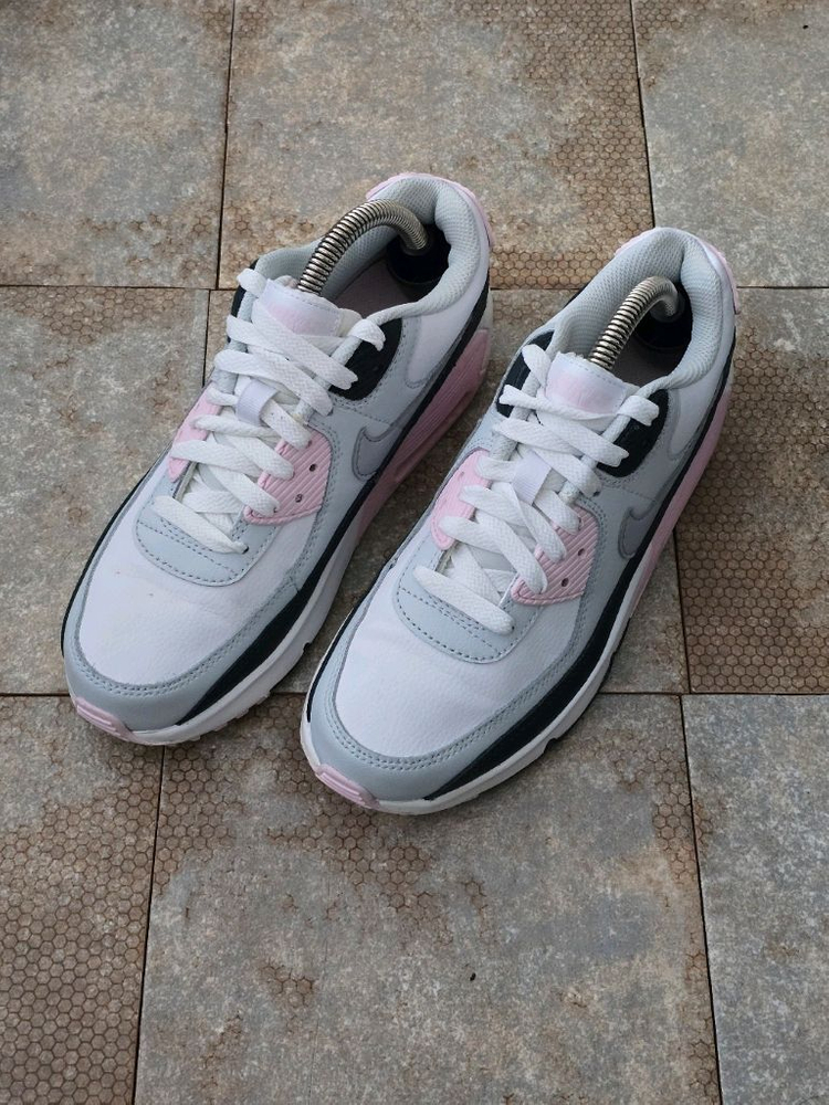 Size : 230(표기 사이즈) Condition : 7.8/10(새상품 기준) 사용감(사진참고) Made Years : 2024 Comment *나이키 에어맥스 90 화이트 핑크 폼 gs 모델입니다. *세탁 완료한 제품입니다.