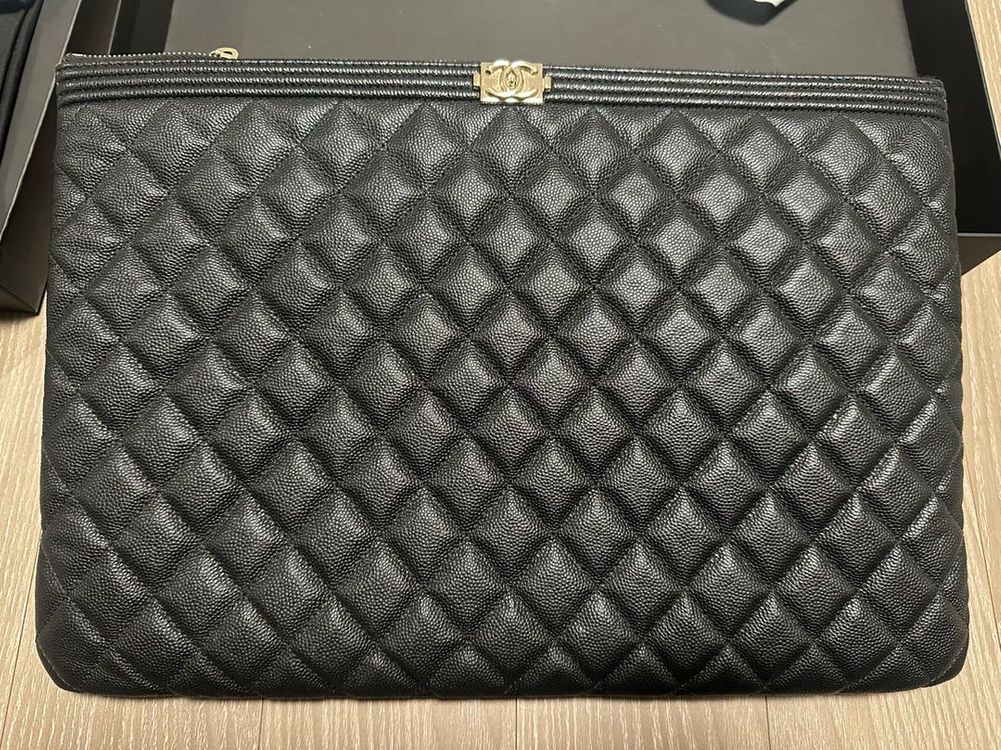 보이샤넬 캐비어 금장 라지 클러치백입니다. 일본 고베 다이마루 백화점에서 구매했습니다. (구매영수증 있습니다~정품 걱정 노노~) 23번대로 년식은 조금 있지만 실사용은 5번이내로 거의 새제품급입니다~ 클러치를 사용하지 않아 판매합니다. 여러장 사진을 올렸으니 꼼꼼히 보세요~ 더스트백 케이스 개런티카드 까멜리아리본끈 등 풀구성입니다. 명품 특성상~ 가품 및 제품이상이 아닌 이유로 반품불가입니다~ 중고나라에 닉네임 호호짝 검색하시면 10년이상 중고거래한 이력이 나옵니다~ 믿을만한 판매자라 생각합니다~ 궁금하신점 문의주세요 감사합니다~.