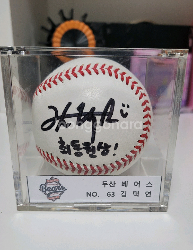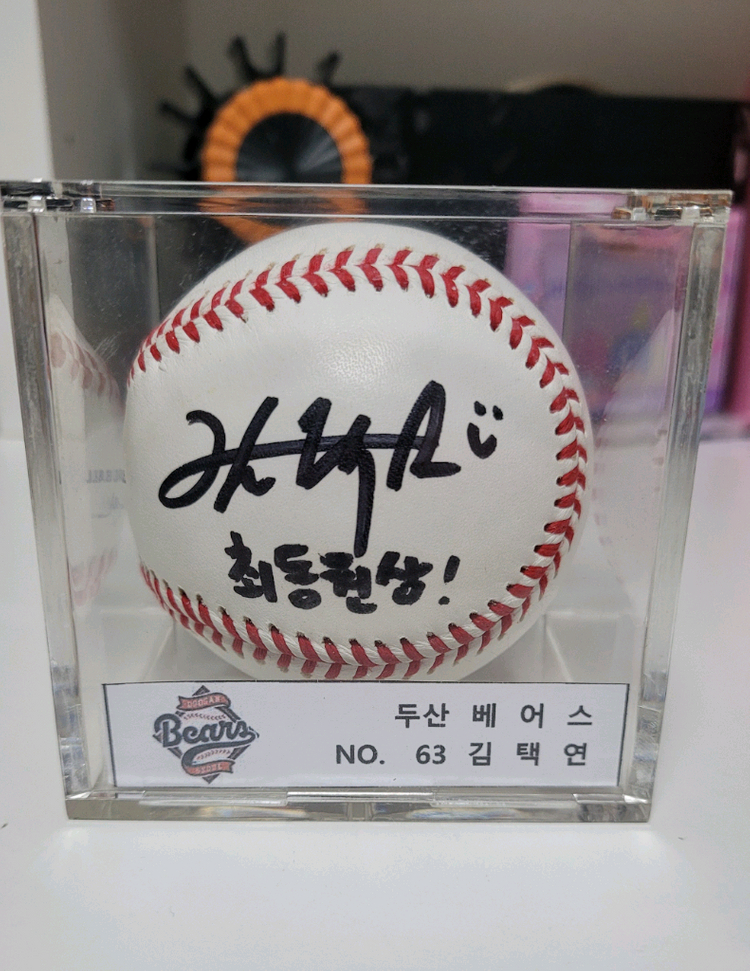 두산베어스 김택연 공인구 싸인볼 최동원상 문구 있습니다 최동원상 수상시 받은 공으로 고등학생 시절 싸인 이며 현재 싸인이 바뀌어 소장가치 많습니다 케이스 포함입니다