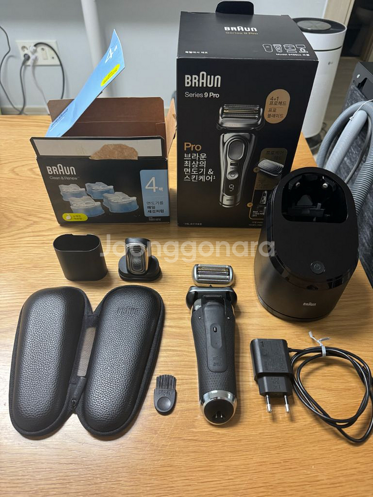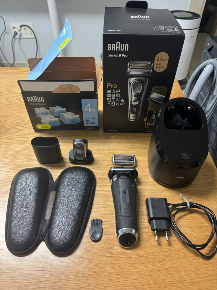 브라운 S9 Pro 전기면도기 풀세트 판매합니다(세척스테이션+프로케어헤드) 레이저 제모를 하고 있가보니 더이상 사용하질 않아 판매합니다! 무상AS 기간이 최대5년이라 23년도 구입제품이기에 홈페이지에 등록하시면 됩니다! 본제품 및 세척스테이션+프로케어헤드와 세척카트리지 2개와 함께 판매합니다. 면도날은 20분가까이 최대한 세척하였지만, 면도기 특성상 피부에 닿다보니 불편하시면 새날 권장합니다(2-3만원) 오산에서 직거래합니다. 택배거래시 노리턴 조건으로 보내드립니다. 010-4오7일-0일5삼