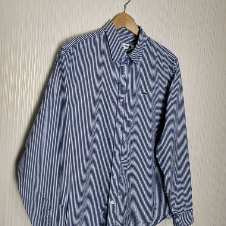 탭사이즈 42 105 슬림핏 사이즈 100 ~ 105 추천 가슴 55 기장 71 어깨 46 라코스테 셔츠 네이비 컬러 버티컬 스트라이프 패턴 편하고 부담없이 입기 좋은 남방느낌 세탁완 하자없고 컨디션 전체 양호합니다 택포시 +3천원 부탁드려요 라코스테 남방 셔츠 슬림핏 긴팔 패턴 lacoste 메이커 폴로 타미 빈폴 헤지스 네이비 스트라이프 단가라 슬림핏 버티컬 블루