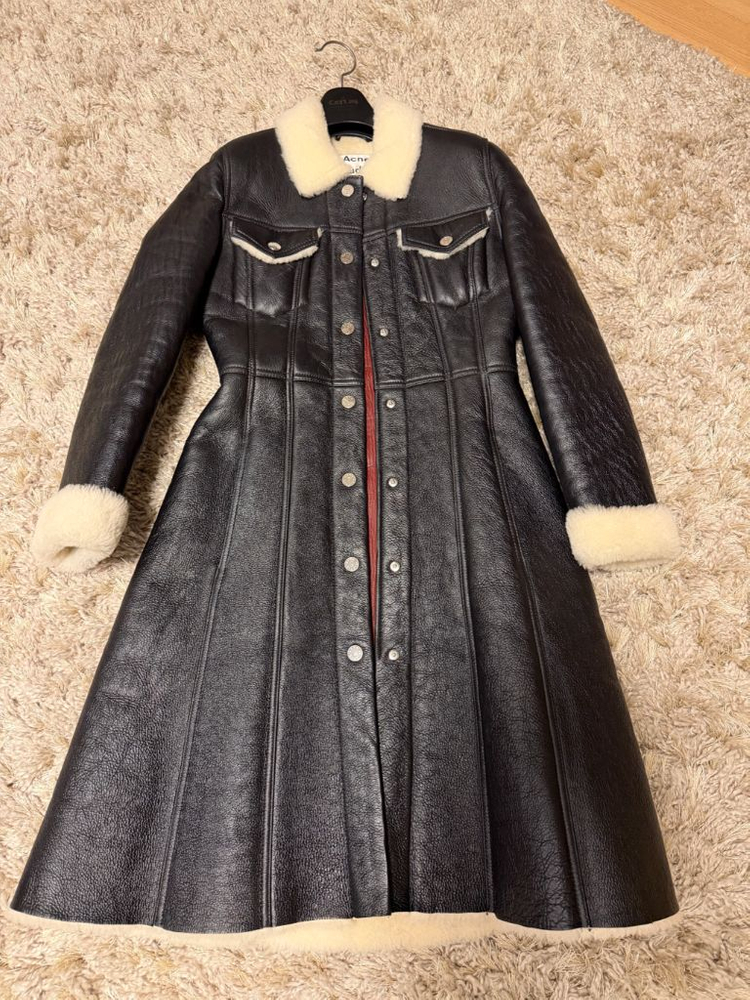 다섯번내외로 자차로 입고 보관해둔 상태예요 당연히 얼룩 스크래치 전혀 없구요 겉감 램가죽 안감 리얼램퍼 라서 따뜻하기는 말할것도 없구요 그냥 딱 봐도 아크네 라서 고급스럽구요 격식있는자리 케쥬얼 모두 다 이쁘고 같은 옷 입은 사람 보지도 못했고 삼성동 현대에서 샀던거 같은데 매장에도 한개뿐이었어다 잠가서 입으면 원피스 입은거 처럼 라인도 딱 떨어져요 사이즈는 신축성이 없으니 55까지 가능하구요 총장은 대략 100cm정도구요 가격은 200만원대 였던 것 같은데 지금 이제품 있다면 아마 300만원이상 할거 같아요 그냥 너무 이뻐요 이 가격에 절대 입어보지 못할 옷이예요 ㅠ 옷도 너무 많고 올해 못입고 지나가다보니 아까워서 올립니다 얼릉 데려가세요 아직 춥습니당 반품 어려우니 신중한 구매 바랍니다