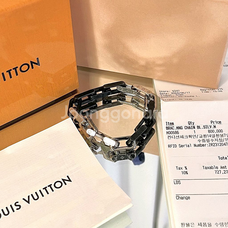[풀구성] 루이비통 버질아블로 모노그램 체인팔찌 블랙 실버 M00686 박스 더스트 영수증 (사진구성) M size 새상품급