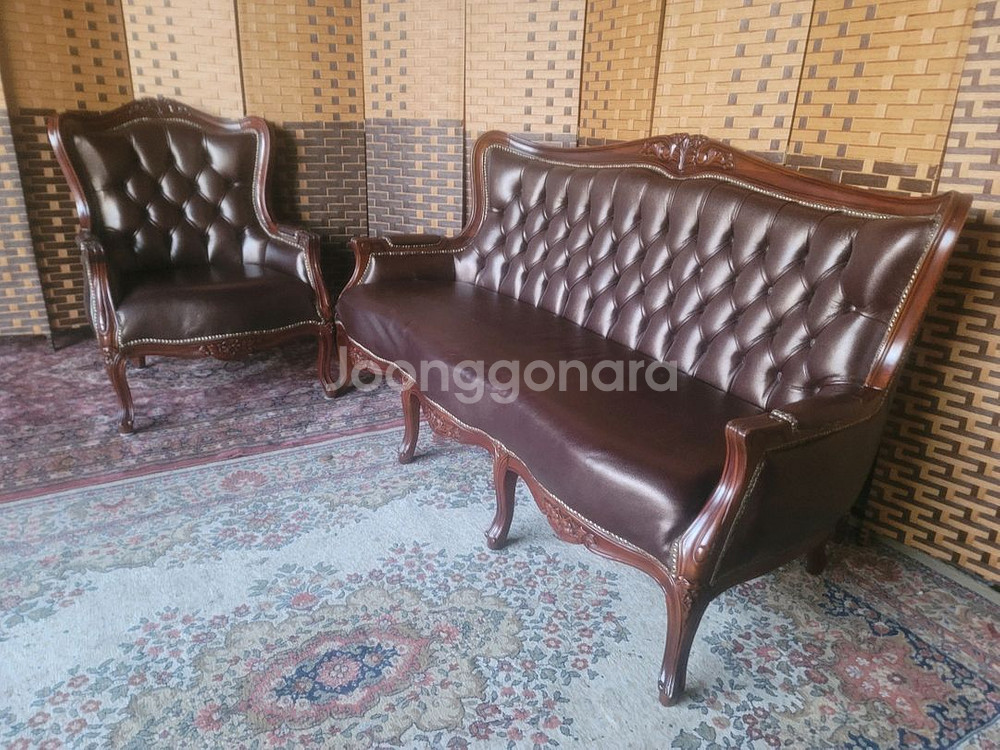 엔틱의 정석입니다. 체스터필드디자인 엔틱소파 3인용 세트입니다. 300만원 가까이되는 상품입니다. 합리적인 가격으로 판매합니다. 3인용,1인용세트입니다. 정말 깨끗합니다. 중고이니만큼 어느정도는 감안하셔야합니다. 중고특성상 반품은 절대 안됩니다. 사이즈는 3인용, 200정도입니다. 1인용 팔걸이 밑부분 살짝 튿어짐이 있습니다. 경기도구요, 수도권지역만 운송비 7만원입니다. ♡비닐랩포장♡해서 깨끗하고 안전하게 발송해드리겠습니다 .^^ 편하게 문의주세요 ^^ 이칠팔칠 오팔칠칠 입니다.