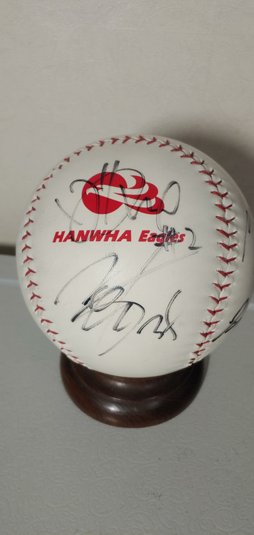 한화이글스 대형구 친필 싸인볼 받침대포함 정민철 55 번 신경현 32번 송진우 21번 이영우 34번 심광호 22번 윤현민 65번 백재호 2번 장종훈 35번 임수민 6번 오봉옥 67번 김해님 58번