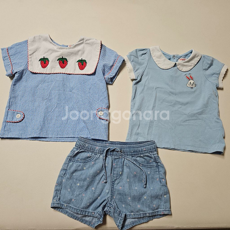 개인정보(거래정보)를 주고받는 행위는 사기에 노출될 수 있으므로 즉시 중고나라로 신고해 주세요베베드피노 블라우스 상태 좋으나 아주 미세한이염 보여요 티셔츠도 자세히 봐야하는 이염있어 싸게 내놓습니다 바지는 이염 없고 보세지만 입히면 이뻐요 같이 드립니다 반값(+2,000)가능합니다