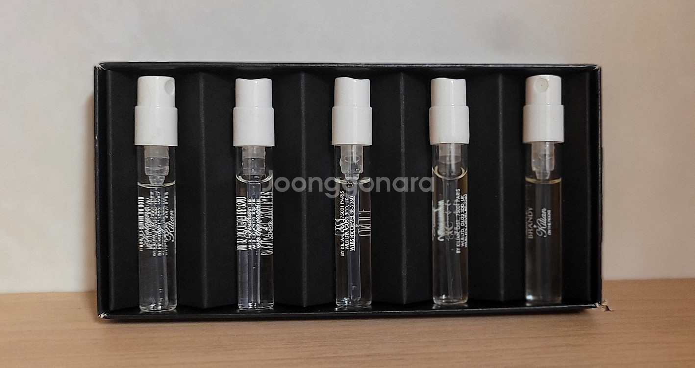 ◆ 바이 킬리안 - 프레시 미니 디스커버리 세트 ◆ (By Kilian - FRESH0 MINI DISCOVERY SET) 국내 구매 / 상자있음 / 각 1.5ml x 5개 / 30,000원 이건 전체 양이 적어서 변향여부 테스트 못해드림. 양해바랍니다. 2회씩 펌핑 해 보고 손을 안댔습니다. 노즐에 차 있는 오래된 향수액은 1회~2회 휴지에 펌핑해서 버리시고 그 다음 회차부터 시향해주세요. <구성품> *보 드카 온 더 락스 *문라이트 인 헤븐 *코롱, 쉴드 오브 프로텍션 *로즈 온 아이스 *애플 브 랜디 온 더 락스 ◆ 택배는 ‘우체국’만 가능, 월~금 오후 3시까지 입금되면 당일 발송. (늦으면 다음날 접수) 금요일 오후4시~일요일 사이의 거래건은 월요일에 발송. ◆ 배송비 기본 4000. 물건총액 +4000원. 4000원넘는 나머지 금액은 제가 부담. ◆◆◆ 환불, 반품 불가합니다. ◆◆◆ 배송 시 파손문제 같은 경우만 '동영상 증거'주시면 환불+반품 해드립니다. (상품 개봉전부터 촬영) ◆◆◆ 읽씹, 잠수는 차단합니다. ◆◆◆ 질문 얼마든지 해주셔도 되는데, 대화 중간에 구매안하려고 읽씹 또는 잠수하시는건 비매너입니다. 전혀 불쾌해하지 않으니 구매원하지않으면 그렇다고 말씀 해 주세요. ◆◆◆사용기한이 지난게 많습니다.◆◆◆ 제가 주로 옷뿌로 사용+수집할 용도로 사둔게 대부분이라 그렇습니다.표기된 한국어 사용기한을 엄격히 따르는 분들은 구매하지 말아주시길 바랍니다.(특히 피부/호흡기 질환있거나, 민감하신 분들) 모든 향수는 상자에 담아 양문장에 두어 보관했습니다. 양문장이 있는 방은 햇빛 들지 않는 서늘한것이라 대부분 상태가 매우 양호합니다. 다만 갯수가 100개가 넘다보니 하루안에 테스트하기 힘들어서 대부분 변향 확인을 안하고 올렸습니다. 원하시는 제품 변향 여부는 따로 문의 주세요. 그리고 글에 보틀 용량을 적어둘테니 잔량은 사진으로 확인 바랍니다. 제가 참고한 향수데이터는 참고만 하시라고 올렸습니다. 향수는 사람마다 느끼는게 다르기 때문에 총 점수는 의미가 없으니 신경쓰지 마세요. 잘 느껴진다는 향기군이나 특징적인 향료를 주로 봐주세요. 특히 블라인드 구매 시 조향 노트나 타인의 리뷰를 보고 상상했던 향과는 다르게 직접 시향했을 때 저의 설명과도 다를 수 있기 때문에 그 점 염두해두고 구매해주세요. 향기는 최대한 제가 크게 느낀순서대로 왼쪽에서 오른쪽으로 써 놨습니다. 오른쪽 끝으로 갈수록 잔향이라고 봐주시고, 왼쪽 처음 일수록 크게 느껴지는 메인향이거나 탑노트라고 참고해주세요. 좀 더 자세한 내용을 보고싶으시면 프레그런티카(사이트)에 영문으로 향수이름 검색하시면 됩니다. 이제 취미생활접으려고 최대한 많이 빼서 올려놨습니다. 하지만 중간중간 물욕 때문에 생각이 바뀌면 물건을 뺄 수 도있습니다. 특히 여러개씩 올라간 브랜드들은 제가 좋아해서 집중적으로 모았던 제품들 입니다. 그러니 구매 생각있으실 때 일찍 연락 주시면 좋겠습니다.