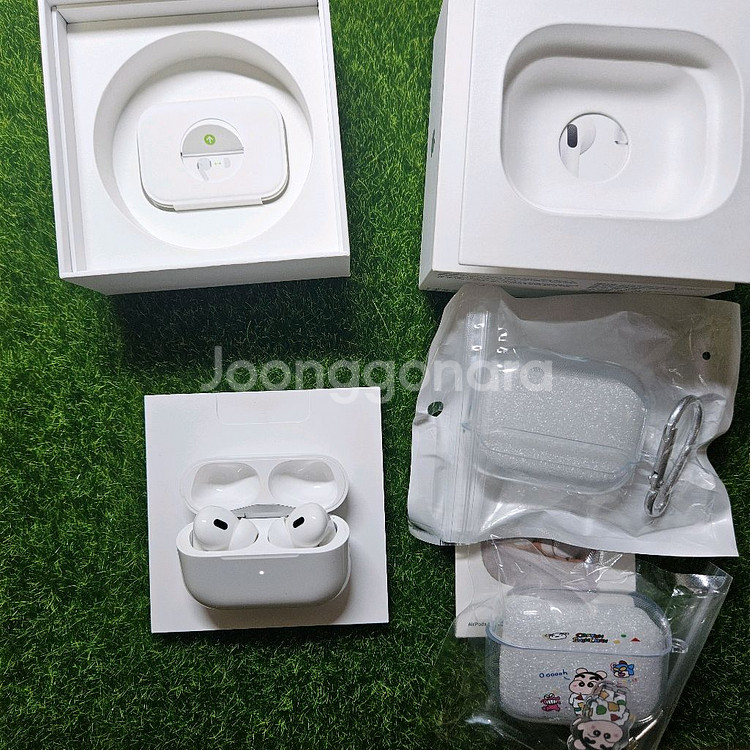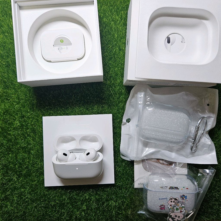 에어팟프로2세대 C타입 풀박스 판매합니다. 지지직거림 등 기기이상 없는 정품입니다:) 이어팁,박스 있습니다. 우체국택배(하루면도착),편의점 택배 다 가능합니다. 투명케이스/짱구케이스 새상품,철가루방지스티 같이 드려요.(모두 새상품) 안전결제 환영하지만 네고는 안해드리고 있습니다.
