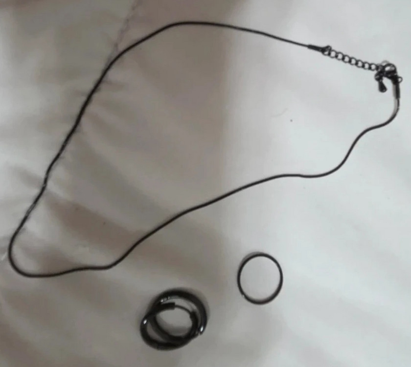 검정색 써지컬 목걸이 반지 귀걸이 세트