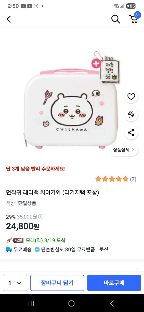 먼작귀레디백 만원 키링포함 착불. 2,400 gs 반값 혹 부피가 반값 택배 규격에 맞지 않으면 편의점 일반 택배로 가요 3,690 입니다